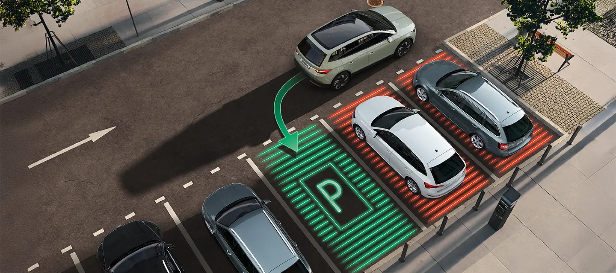 Radyo ekranına entegre görsel destekli ön ve arka park sensörleri,