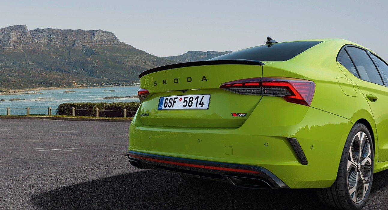 Arka bölümde krom Škoda harfleri